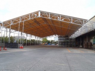 固定テントトップページ > 物流施設 > 固定テント固定テント ・積雪でも対応可能 ・悪条件に耐える強靭なBODY! ・各種使用に応じた自由設計・フリープラン ・照明設備でますます効率アップ ・オプションにてサイドカーテンの設置も可能 施工例